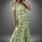 Step into elegance with the Alice Off-Shoulder Floral Maxi Dress, a stunning piece designed to make you feel confident and radiant. Its flowing silhouette and off-shoulder neckline create a look that is both graceful and effortlessly stylish. Whether you're attending a garden party, a romantic dinner, or a casual stroll by the beach, this dress brings a touch of timeless beauty to every moment.