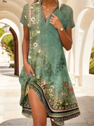 Carla™ | Stylish V-neck Buttoned Floral Dress