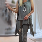 ✔ Elegant Sleeveless Top – The asymmetrical design of the top with a shorter hem in the center and longer on the sides offers a look that is both modern and elegant.