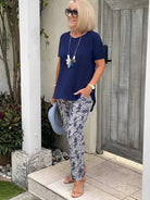 - Timeless Fusion of Elegance & Ease: Featuring a tailored top and artfully patterned pants, this set blends solid colors with captivating prints, offering a refined, radiant look that stands out effortlessly.