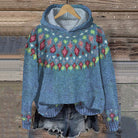 This knit doesnβt itch or irritate, thanks to a soft, breathable blend that feels gentle against your skin. It keeps you warm without overheating, ideal for the changing autumn weather. The material holds its shape, so no sagging or stretching after a few wears. The colorful, Scandinavian-inspired pattern adds a playful yet stylish touch to any outfit. Dress it down with jeans or shorts, or elevate it with a skirt and boots. The hoodie adds both extra warmth and a laid-back vibe.
