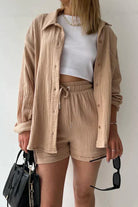 Meet the Levelle 2-piece Summer Set — your ultimate warm-weather outfit for comfort and charm in equal measure. Crafted from soft textured cotton, this set features an oversized button-up blouse and elastic drawstring shorts that flatter every shape. The lightweight breathable fabric keeps you cool on sunny days, while its coordinated look makes it easy to dress up or down. Whether you're strolling through the city or lounging on vacation, Levelle delivers a versatile relaxed fit you'll want to wear on repeat.