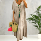 Designed for confidence, this dress features a flowing silhouette that enhances your shape while providing subtle belly coverage for a smooth look. Made from soft, breathable fabric, it ensures all-day comfort without compromising style. The versatile design transitions effortlessly from casual outings to special occasions. Easy to maintain and wrinkle-resistant, this dress is a timeless and effortless wardrobe essential.