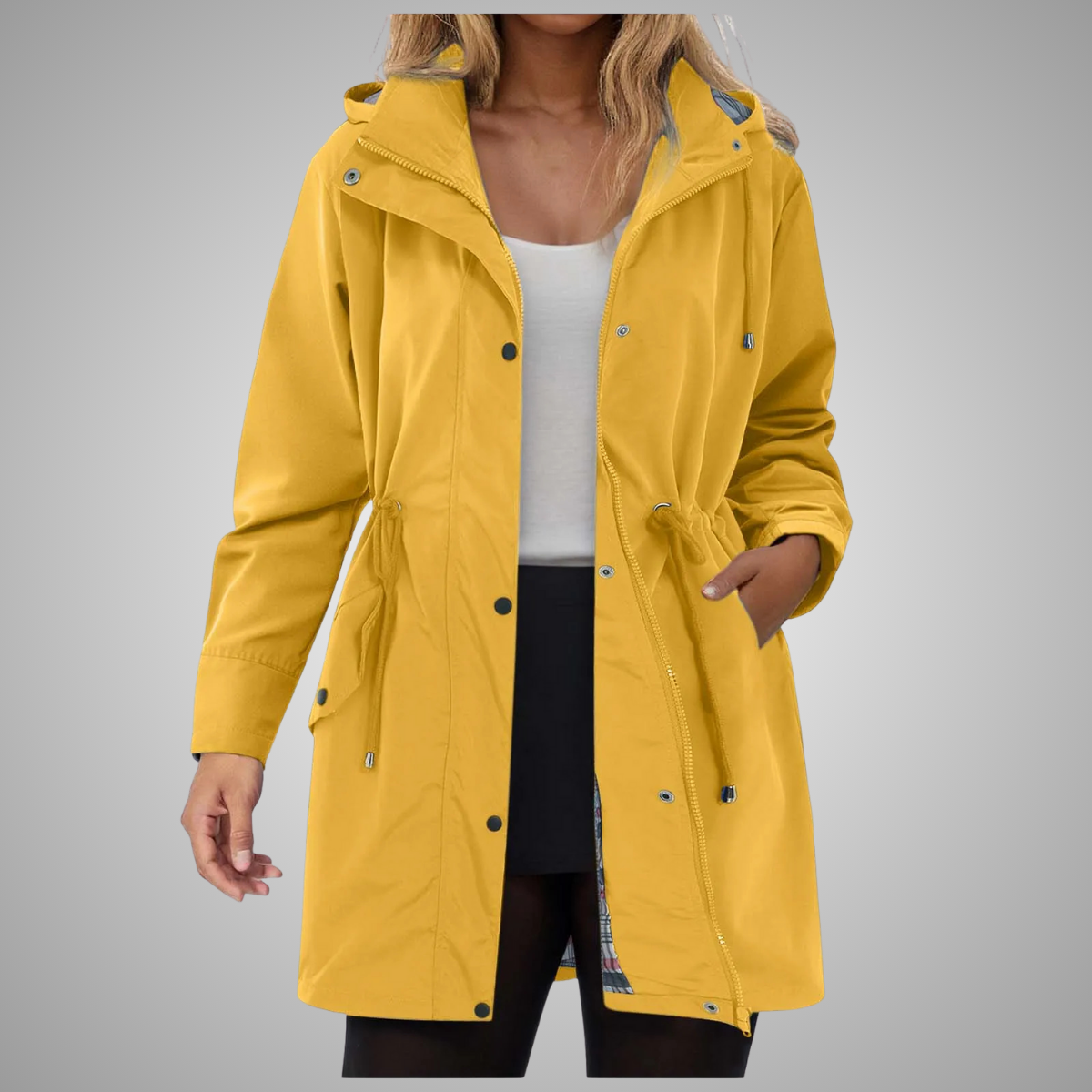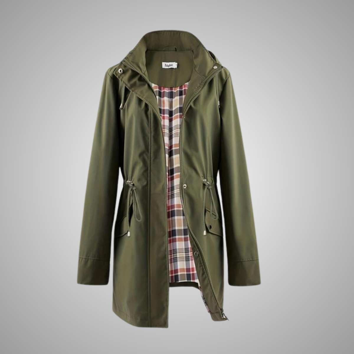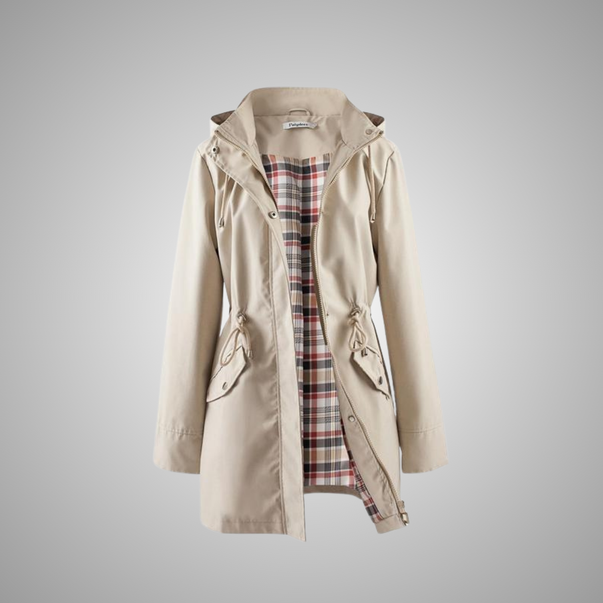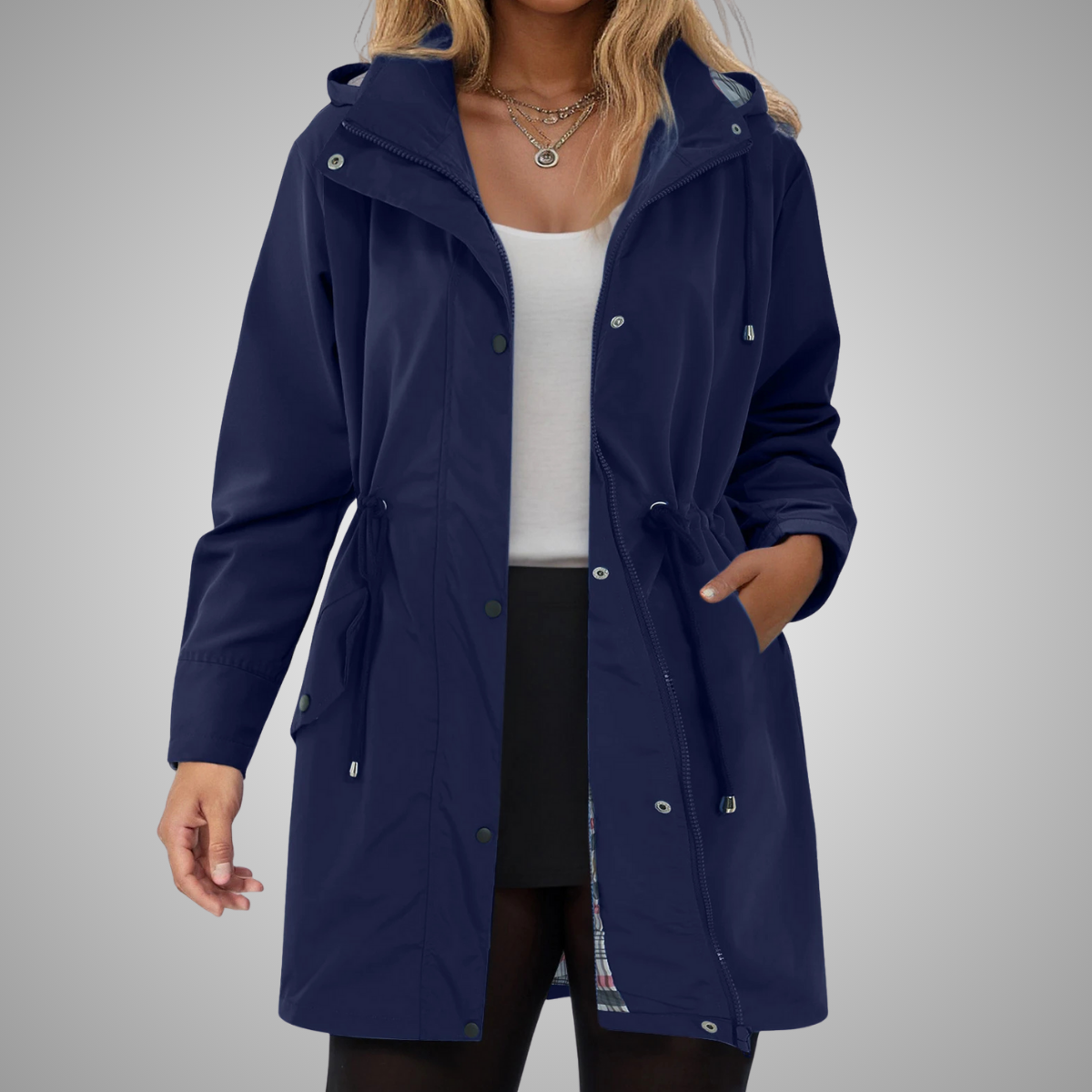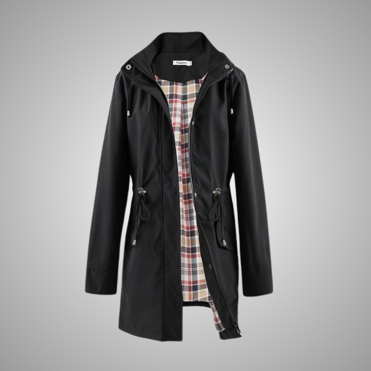A stylish jacket perfect for autumn and winter season. Wear it over your cute outfit for protection from wind and rain. The jacket has a comfortable fit and adjustable waist to enhance your figure.
