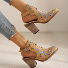 The Rosine Vintage Floral Ankle Boots blend artful embroidery with bold structure for a standout statement. Featuring vibrant floral stitching, decorative studs, and a block heel, these boots bring a touch of romance to any outfit while offering solid support. Finished with a buckle strap detail, they’re equal parts elegant and edgy.